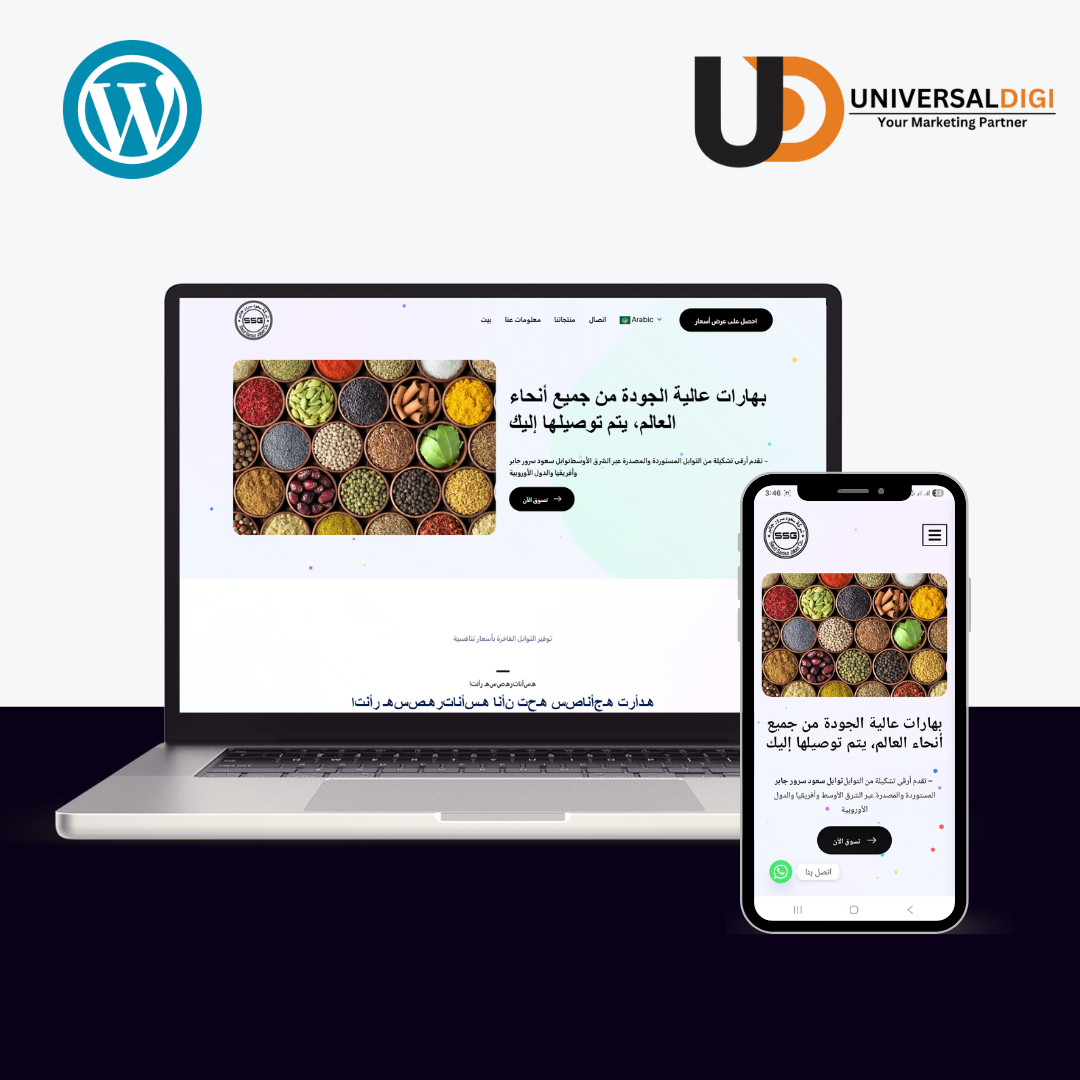 A professional Spices Trader website showcasing spices and other products available for import/export available in both english and arabic.